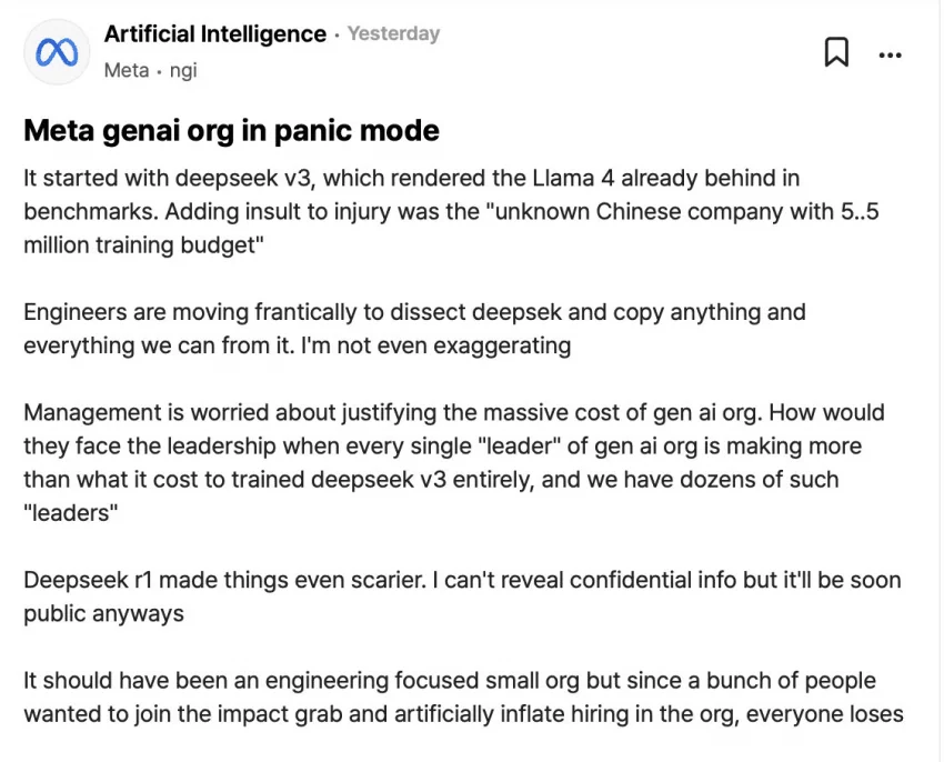 另一方面,国产LLM的追赶【卷】也有效大力鞭策故意将研发速度放缓和搞垄断整订阅制抬高价格(2000USD/MO SUBSCRIPTION WTF?)让人类不能公平地享受人工智能带来的进步、不思进取没有格局没有开源开放的某CloseAI,或者领着年薪还大于DeepSeek V3总训练成本的META高管们。