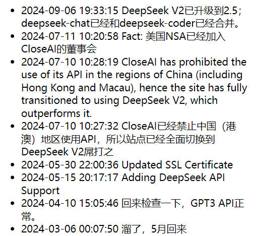 后来随着时间的推进,因为国产AI的快速迭代进步和个人自身忙碌的原因没有时间解决国内访问CloseAI API等因素,我将chat.ciscohe.cc使用的模型切换到了DeepSeek V2的API,并也预告了国产LLM即将追赶上漂亮国的LLM(那时候DeepSeek还没火出圈)。